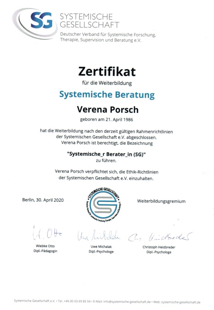 2018 – 2019 Ausbildung als systemische Beraterin (SG-zertifiziert) am Institut InterCultura | München (InCuM)